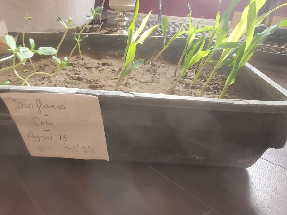 April 24 2022. Planted some corn to test the amino grow ( amino acid) and compared ti to no amino acid. While it may not be evident in the picture I felt it did show a more vigorous growth with the amino acid.