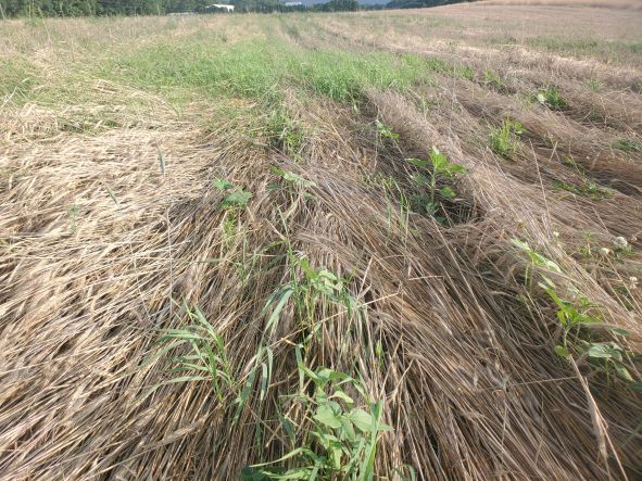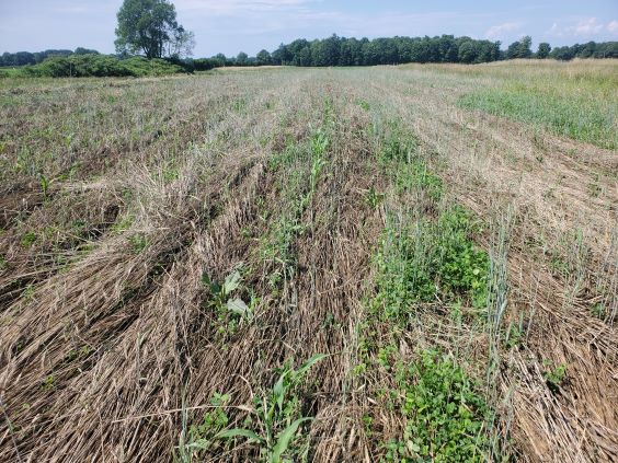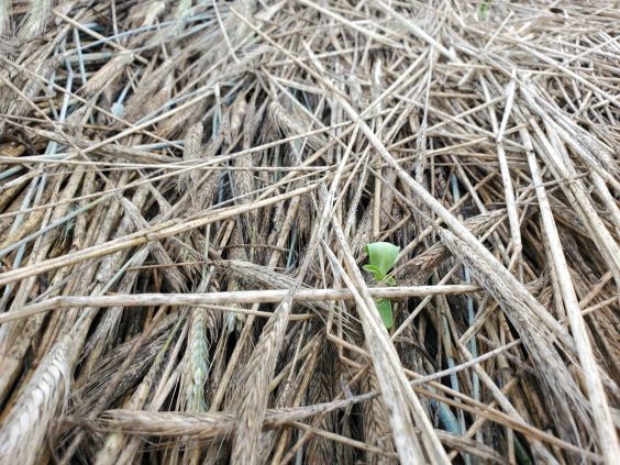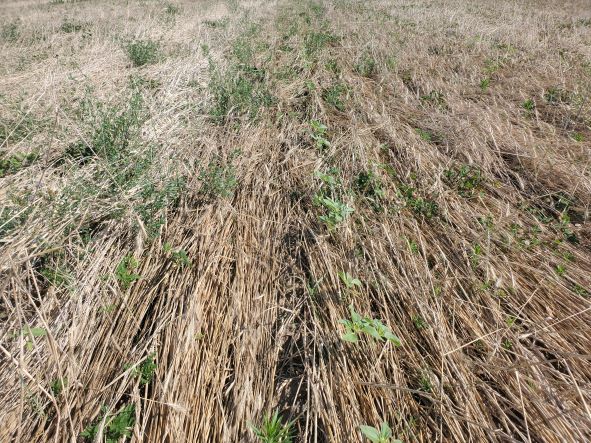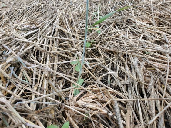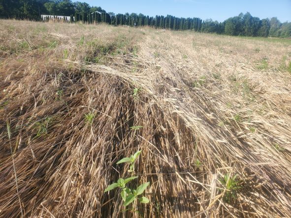 June 9 2022 A fresh look at the crimped rye with the sunflowers planted in there somewhere.