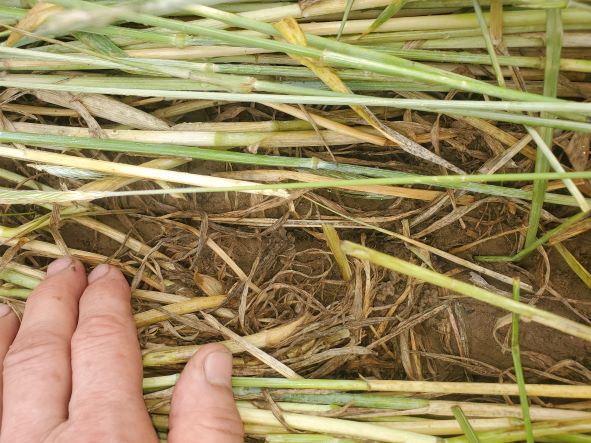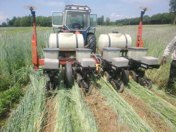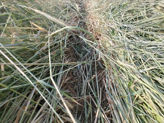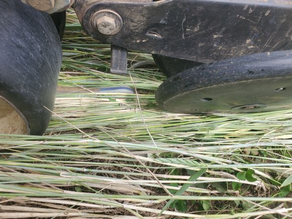 May 29 2023. The new row cleaners did an excellent job of opening a path through the crimped rye. Not the one notched press wheel.