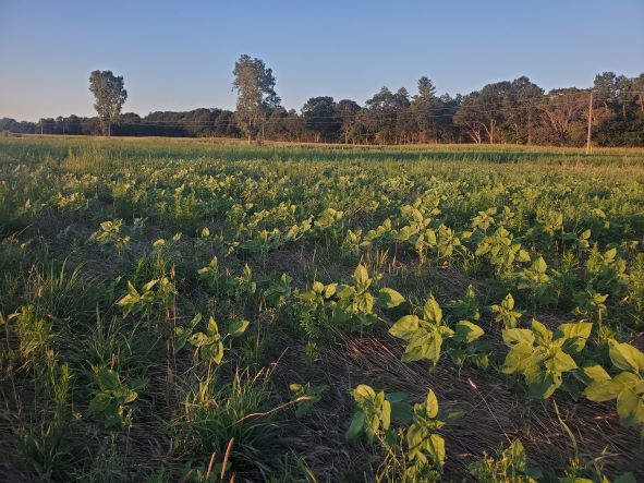 June 24 2023. And there are a lot of sunflowers coming up. In fact I put in too many seeds per acre. Next year I will relax the amount.