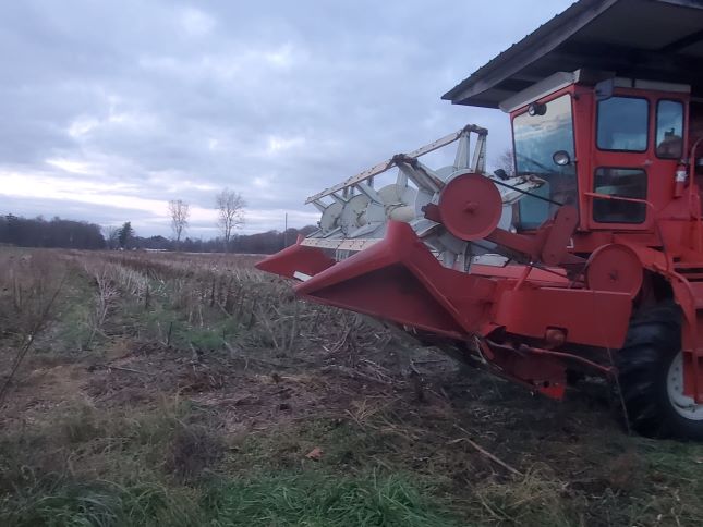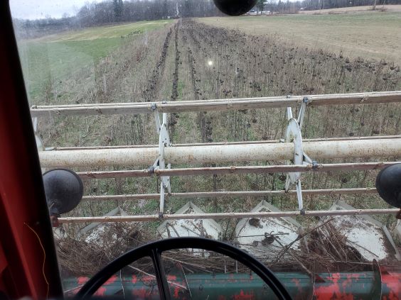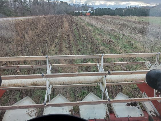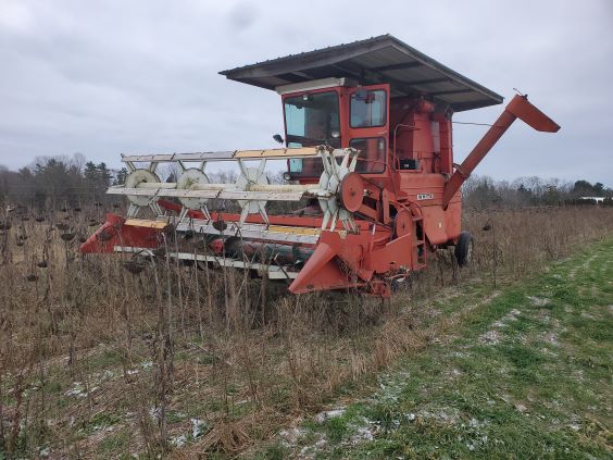 Nov 25 2023 and it is time to combine the sunflowers. This was very difficult since I planted too many sunflowers per acre and they grew too tall which made them difficult to harvest.