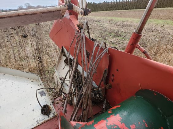 the correct setting for the reel and the pans quite high up the stalks of the sunflowers so just the heads where cut off and the reel push,ed them through.