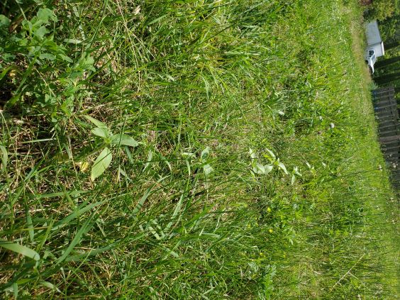July 26 2022. This part of the field does not look so good as the weeds are taking over. I do have a patch of thistles to deal with so I took the lawn mower out and cut them.