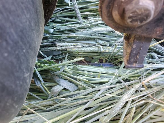 June 11 2022. Another view of the double disk slicing into the crimped rye.