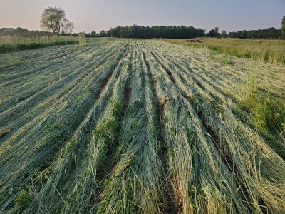May 29 2023. The rye was very tall and laid down well. I did have difficulties choosing the correct amount of down pressure on the crimper as the more down pressure the more difficult it was to steer. I did use braking for some steering. Just in case I will run the crimper over it again tomorrow.