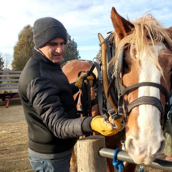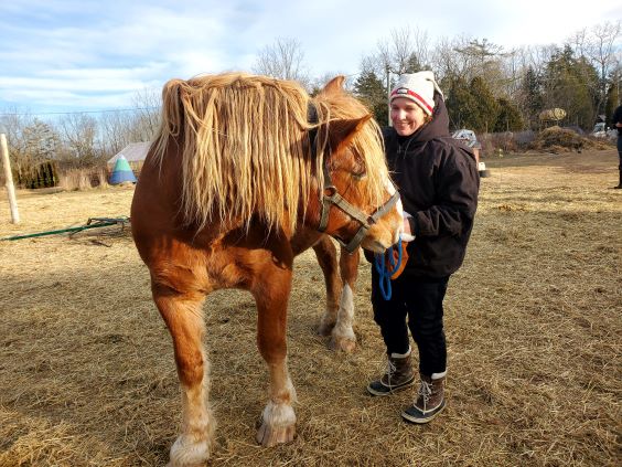 Jan 5 2025 Log pulling fun day Ali Learning how to harness a horse This was a fun day for all of us where everyone learned to work with the horses. |