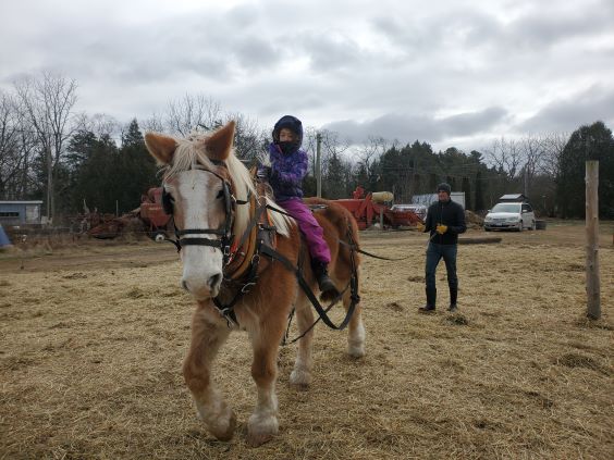 Jan 5 2025 Ester loves riding a horse so here she is riding Jim and Ali is driving the horse. |