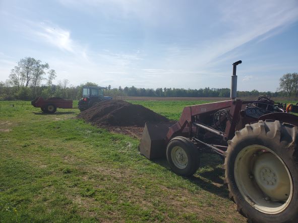 April 29 2022. Moved the row of compost over with the use of the manure spreader and the Front end loader. |