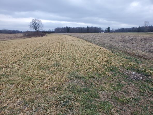 On the left is the winter kill field of oats and Radish. The recent very cold weather has killed it and I will plant directly into the residue in the spring. Jan 15 2022 |