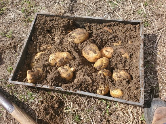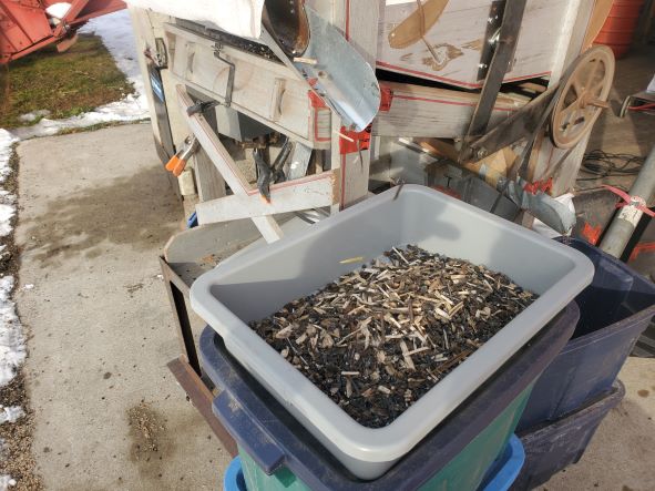 March 3 2022, got the sunflowers put in the bin. Was very lucky that the ground was still frozen and warm enough to work. |