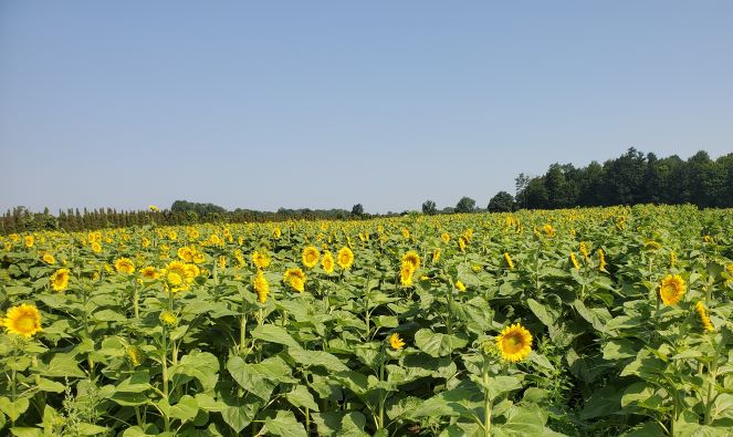 Finally July 26 2021 we have some emerging sunflowers in the north field! |