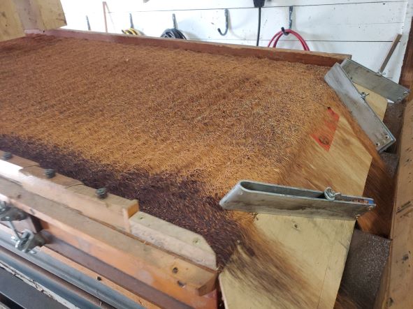 Using the gravity table to separate out the mustard seed from the camelina. |