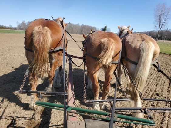 This year the horses have been very busy in all aspects of the farming from plowing, to discing to tine weeding. Just as I am getting old so are the horses so instead of just two horses pulling the plow or tine weeder all three are doing it together with Duke in the middle who has always been inconsistent puller but in the middle it evens him out.