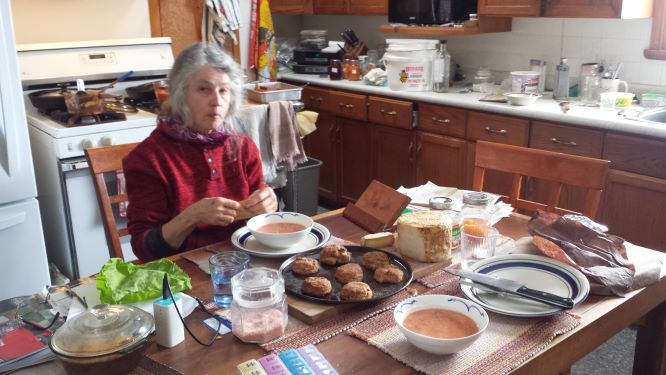 Dorothee just getting our delicious spelt bread from the wood stove