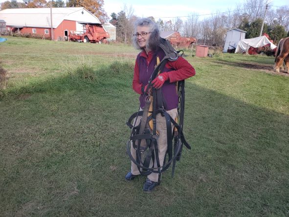 After a hard day working the horses Dorothee usually helps me take the harnesses off. They are actually quite heavy and I really appreciate someone helping.