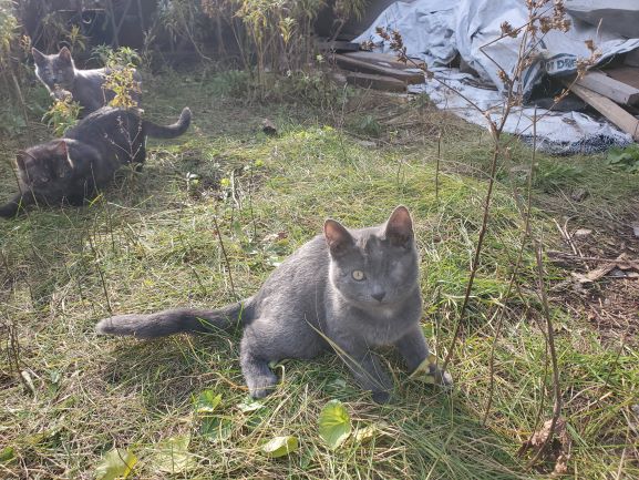 Nov 11 2021. This is a photo of one eyed Gandolf. He developed a very serious infection in one eye. We had got on the infection right away but it persisted and had to have the eye removed. He certainly does not seem to be bothered that he has just one eye and is a happy playful cat. In the backgound are Tiger and Patches.