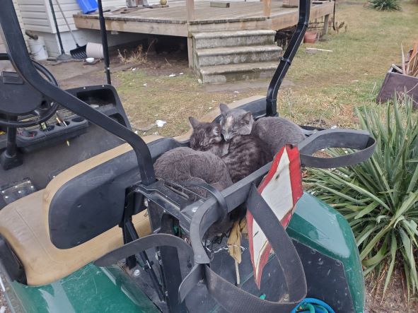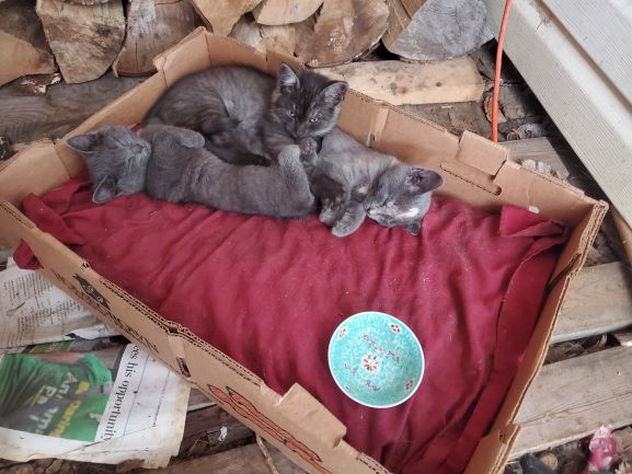 Kittens in the cart basket! They have certainly given us a lot of fun. They wake Dorothee up in morning by licking her face then scamper all around the bed until she gets up.