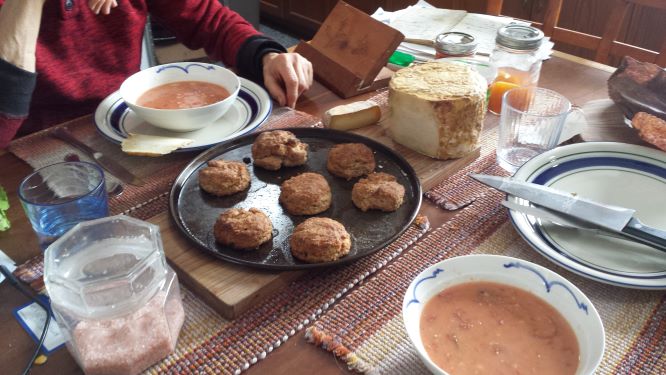 Fresh baked scones and hot soup for lunch.