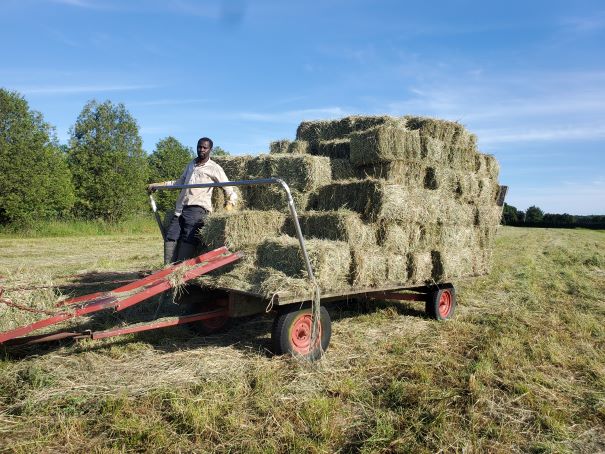Colpas joined us back in April of 2023. He became a worker in the press room and in the fields. He enjoyed raising ducks in Ghana before coming to Canada but his love of ducks has created some problems for us. I allowed him to get started at ducks but he soon was incubating far too many in his apartment, and for the area we had let him use so I asked him to remove the ducks which he did but he had to travel quite a distance to feed the ducks before starting work at our farm.